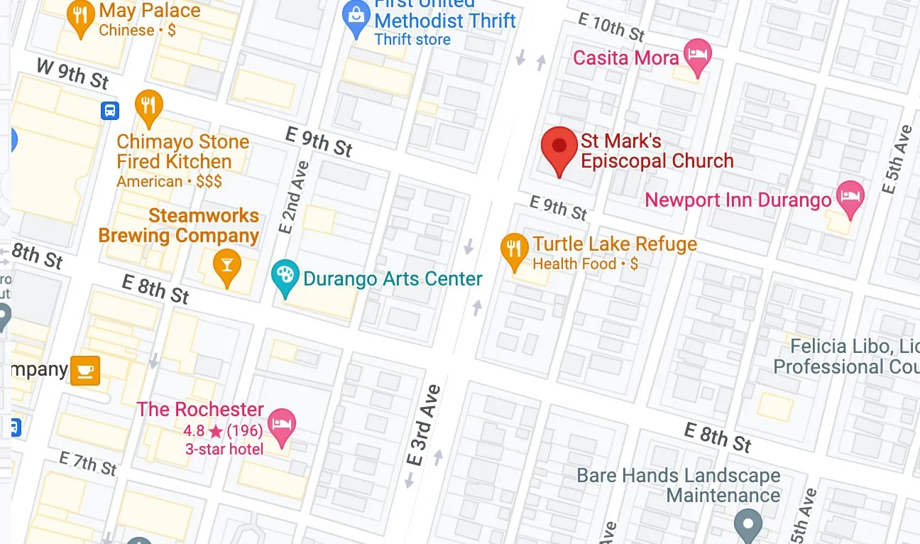 We are located in the heart of Durango at the corner of E 3rd Ave and E 9th St. We hope you join us soon for a worship service or other activity.